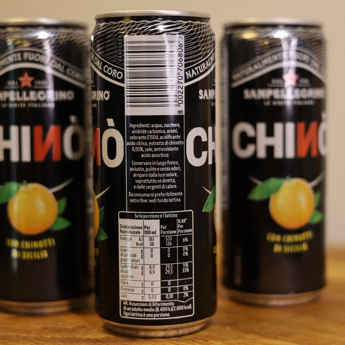 Chino S.Pellegrino to orzeźwiający napój gazowany, wytwarzany z owoców chinotto. Swój klasyczny, ciemny kolor zawdzięcza obecności karmelu. Prawdziwie włoski, kultowy napój.