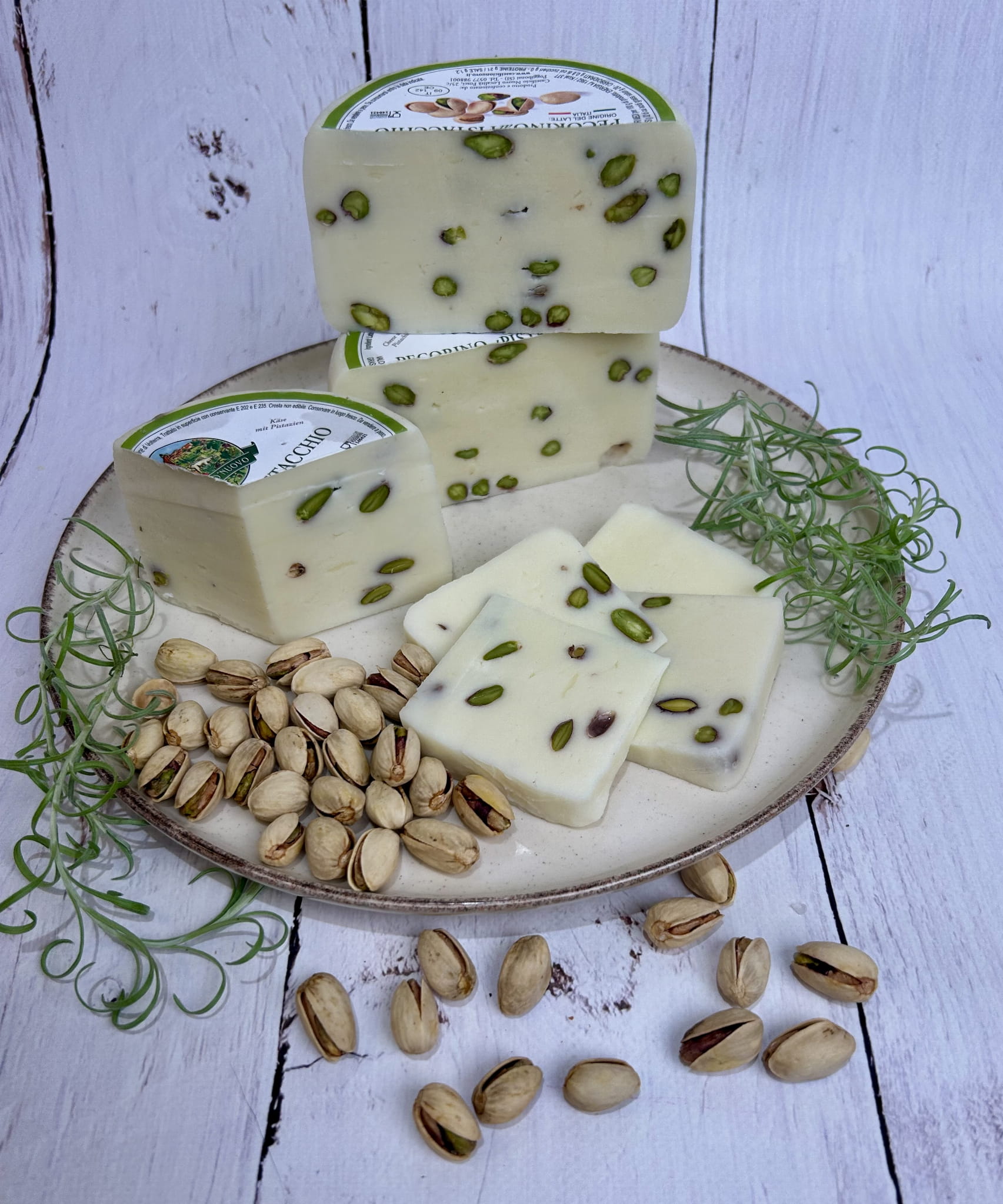 Dodatek pistacji wzbogaca delikatny aromat pecorino, nadając mu wykwintności i elegancji.